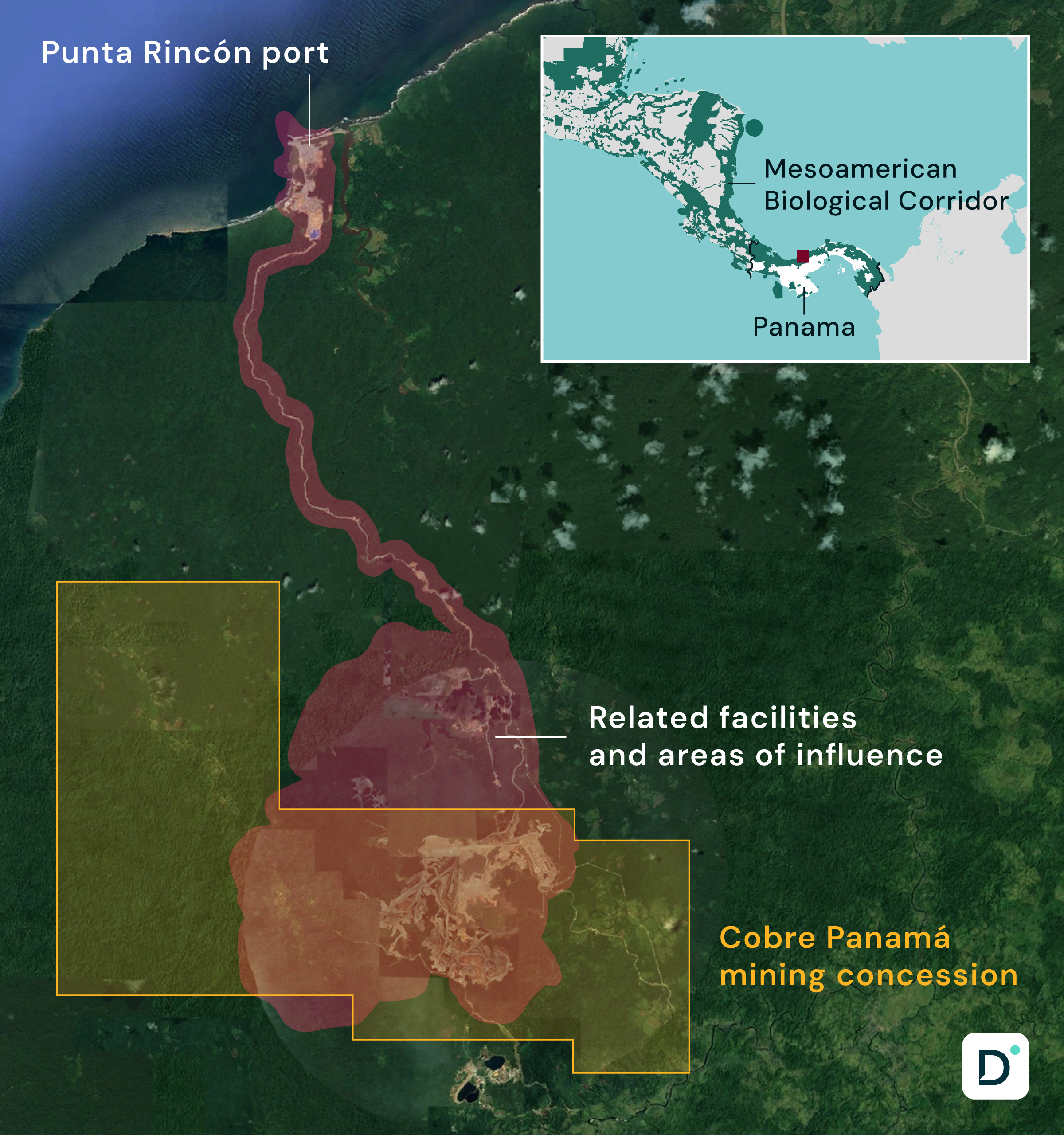 The company itself acknowledged impacts on over 3,000 hectares in the area due to “mining activities”, although it claims to have reforested 4,200 hectares as part of its mitigation plans. But Joana Ábrego, legal manager of the Environmental Advocacy Centre Panama (CIAM), a local NGO, told Dialogue Earth that the project’s footprint could be as large as 20,000 hectares, if facilities that service the mine such as the Punta Rincón port, among others, are included in its area of influence.