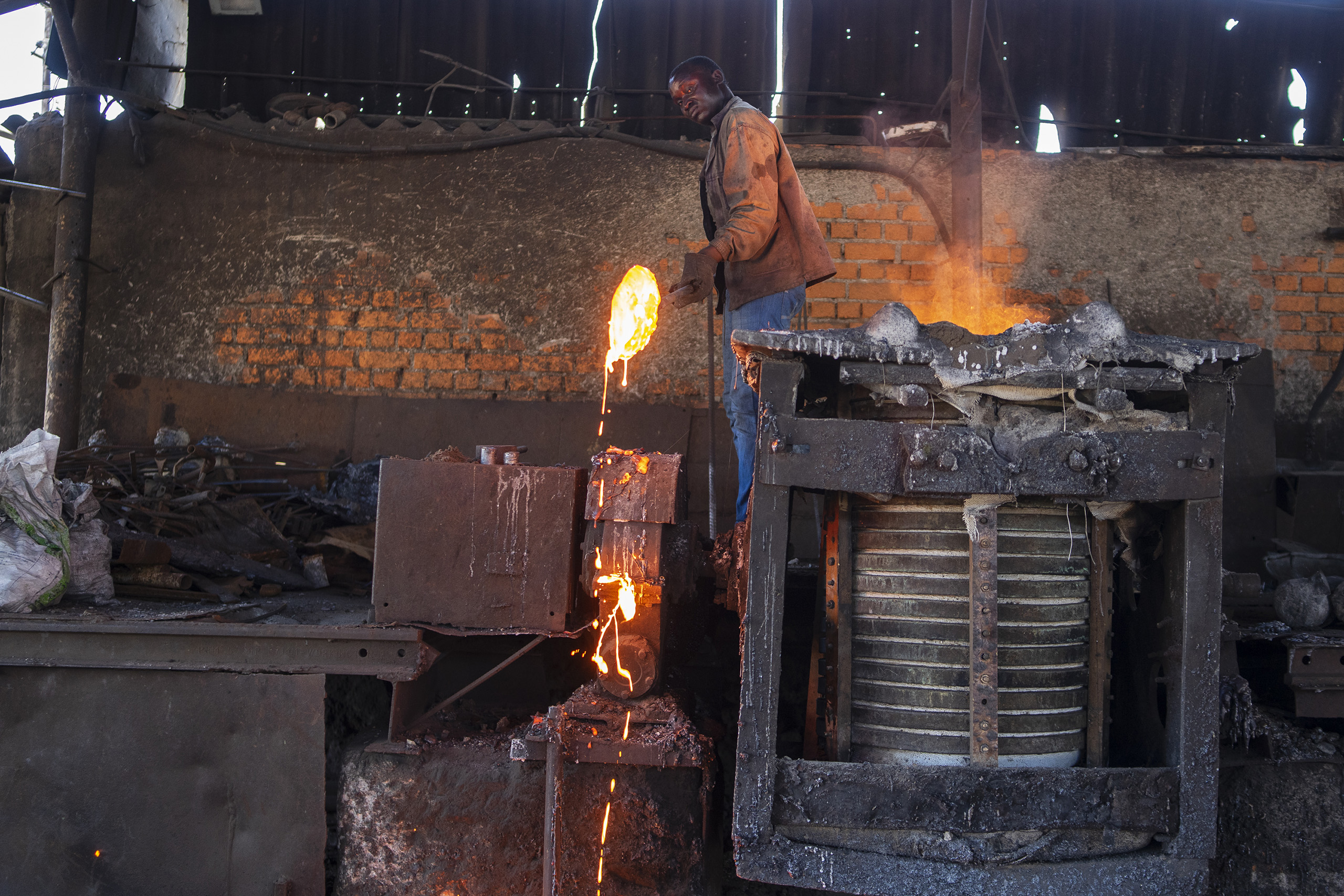 While larger businesses such as the city’s Chinese-owned operators work with larger items, backyard workers such as Ncube largely deal in smaller goods. “I use soda cans which I buy from collectors and melt them to make three-legged pots,” he told China Dialogue from his workshop. Across the city, local residents can be found digging through commercial waste looking for discarded soda cans.