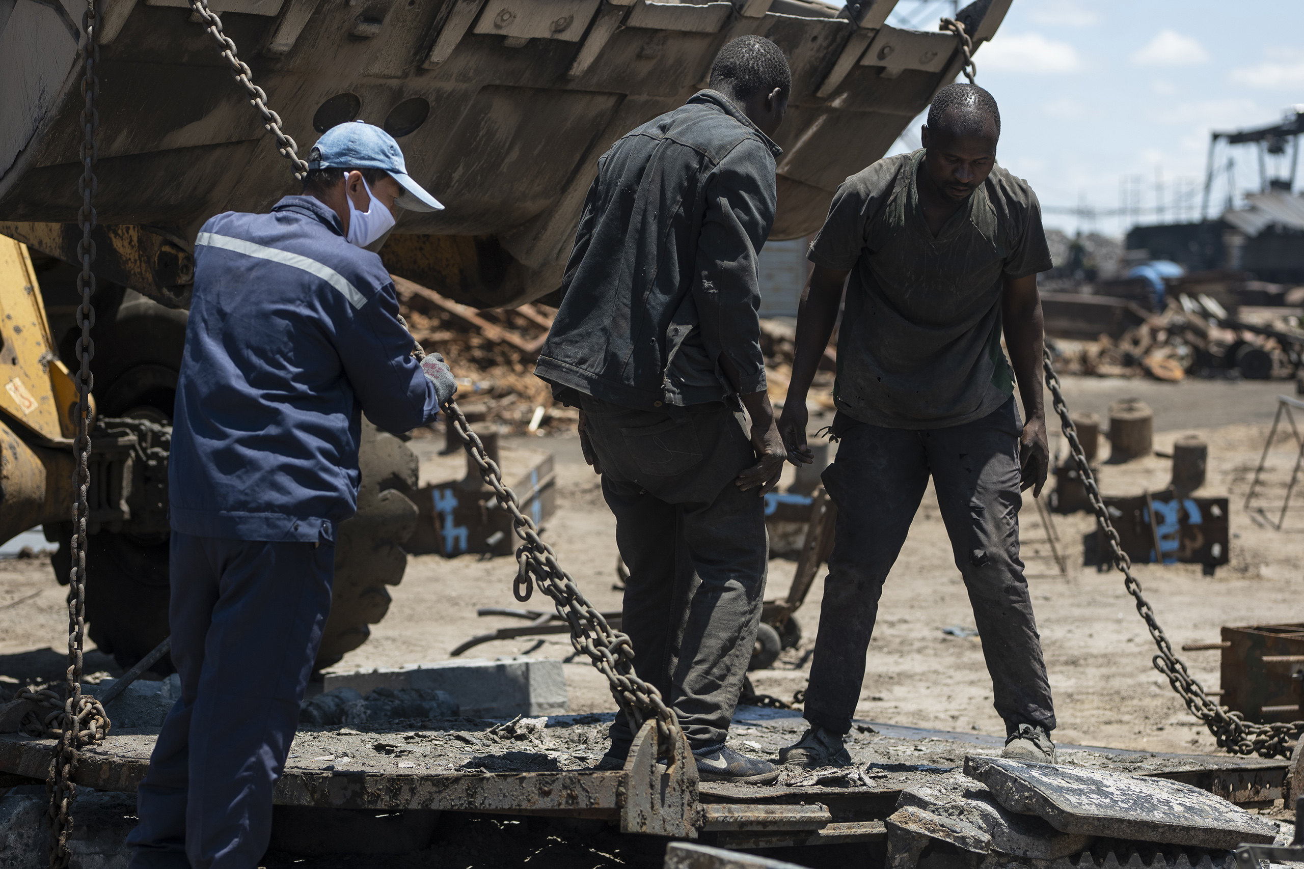 At the Naisonale Investments scrap heap, parts from haulage trucks and railways, such as tracks and train components, can be found, before they are transferred to the furnaces and cast into new steel products.