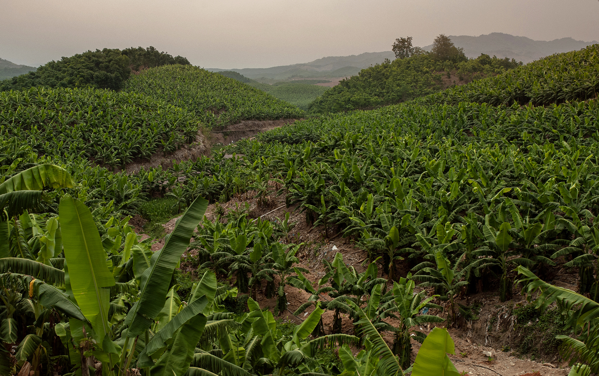 Chinese banana plantations first started cropping up about six years ago in Bokeo province, northern Laos, which borders Thailand and Myanmar. Nowadays they cover more than 11,000 hectares, provide US$100 million in annual exports, and make up 95% of Bokeo’s exports, according to a 2017 report by Plan International.