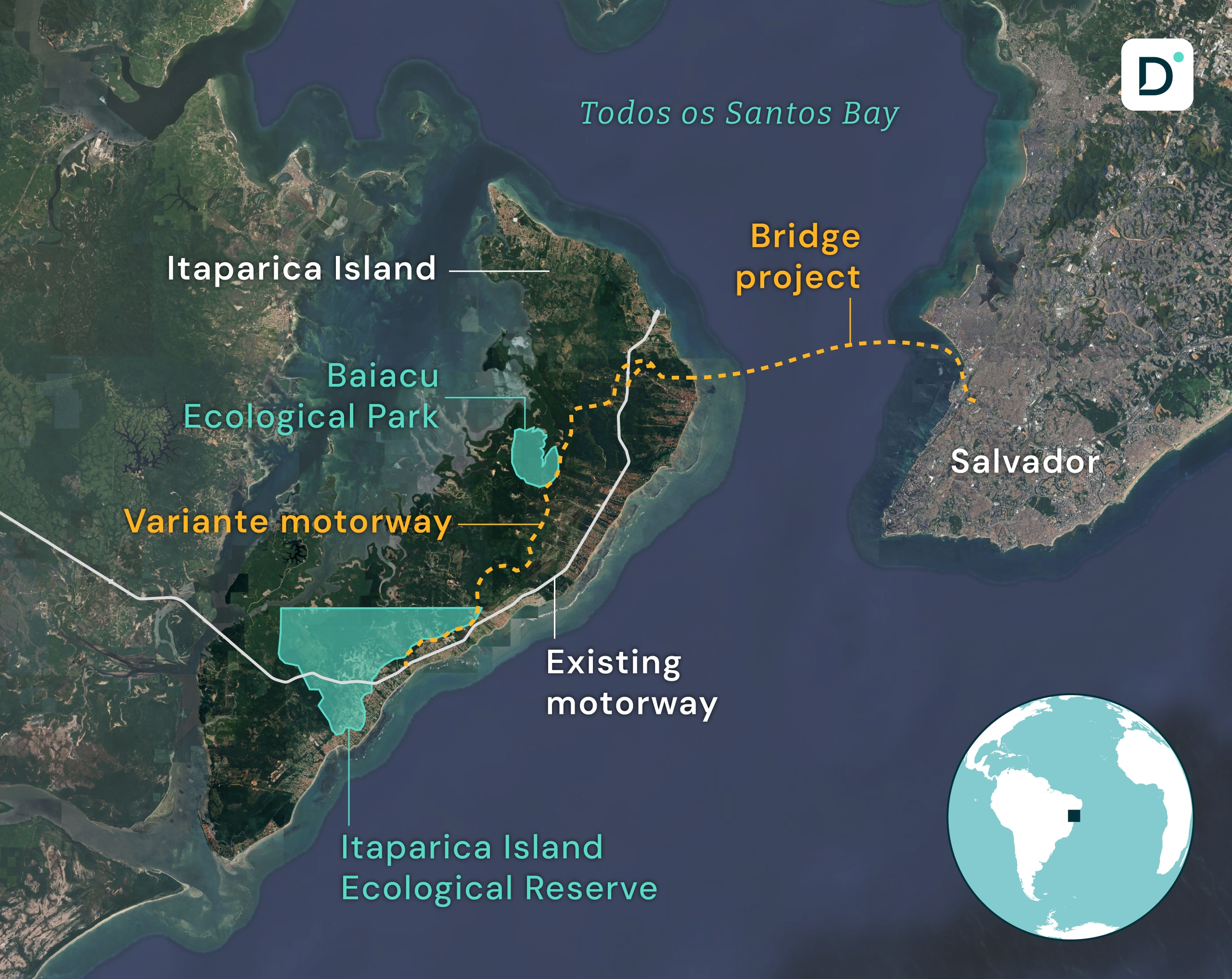 As well as the bridge, the project includes roadworks in Salvador and Itaparica. Among them is the Variante, a new 18-kilometre motorway that would receive traffic from the Salvador-Itaparica bridge, cutting directly across the middle of the island to then join an existing road before the Funil bridge. It is from this set of roadworks that the main questions arise.