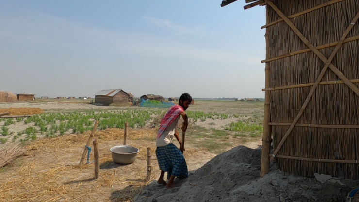 It is common for people to settle on chars; in fact, across the state, these islands cover 360,000 hectares of land and host some 2.5 million people. Every char is eroded on the upstream and receives silt on the downstream. So every year, the floods affect the shape and place of the char. Sometimes the river creates new islands; others it washes out of existence.
