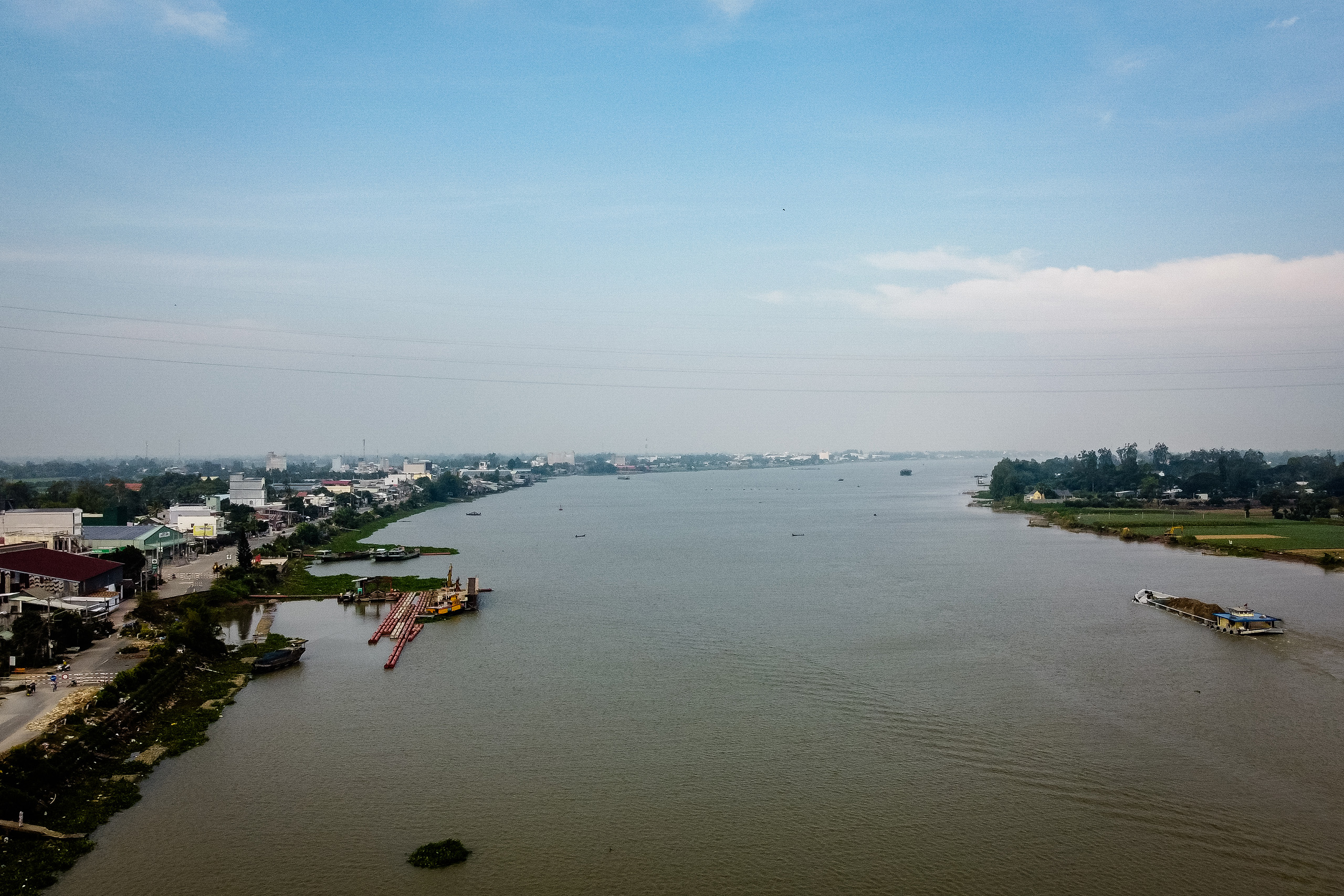 Nearby, the road ends with a ragged edge of tarmac, beyond which the river has consumed everything. A half-dozen sand-mining barges sit off Tan Thuan Dong’s coast, the diesel engines of their excavators shattering the quietude of the rural island as they dredge to feed Vietnam’s voracious construction industry.