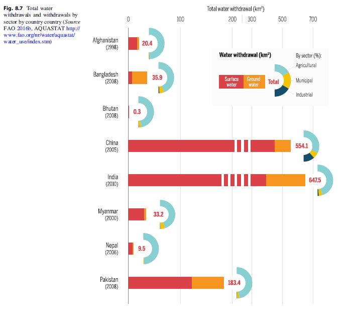 Lastly the change in water flows, especially lower base flows during the summer months, is likely to strain international relations. The cooperation mechanisms between India and Nepal have not worked well. While the Indus Rivers Treaty between India and Pakistan has stood the test of time, it has become an increasingly testy subject. A repeat of an extreme rainfall event as happened in 2014 in India’s state of Jammu & Kashmir and bordering areas in Pakistan’s Punjab – which led to hundreds of lives lost in both countries, will only increase tensions unless timely data sharing and policies of disaster cooperation are not put in place. India and Bangladesh signed the Ganga River Treaty in 1996, but it is based on a sharing of water that just may not be available in the dry seasons if water levels decline during that time. Furthermore 90% of Bangladesh’s water comes from transboundary rivers. The Ganga River Treaty covers only one – even if it is a major river – and will expire in 2026.