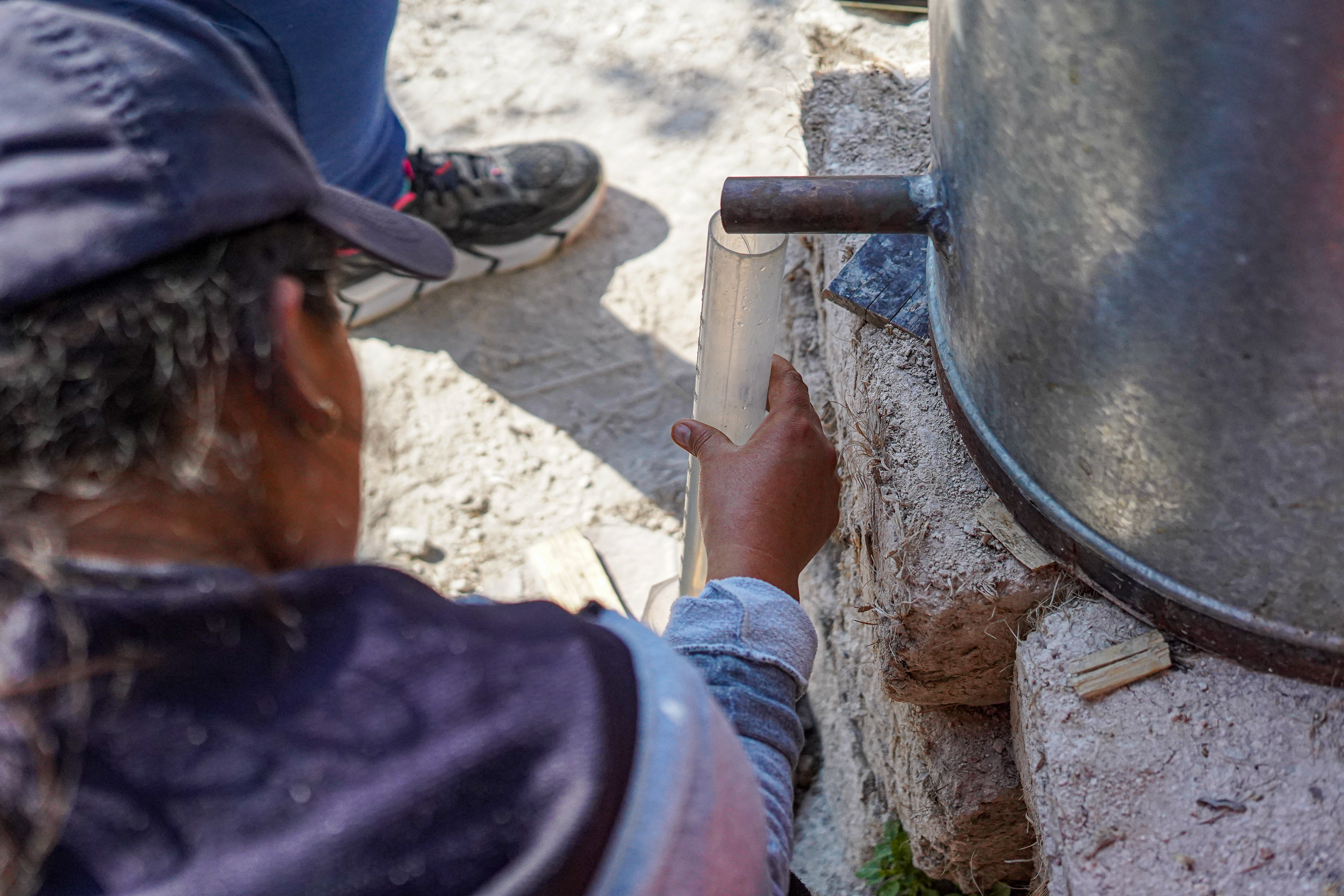 Una vez cosechados, los corazones de agave se cocinan con leña en hornos cónicos en un proceso llamado “tapada”. Así se caramelizan los azúcares y se favorece tanto la fermentación como el contenido de alcohol del destilado final. El combustible de ambas etapas es la madera que se obtiene de los cerros de alrededor y aumenta el impacto ambiental de la producción de destilados en las distintas regiones de México.