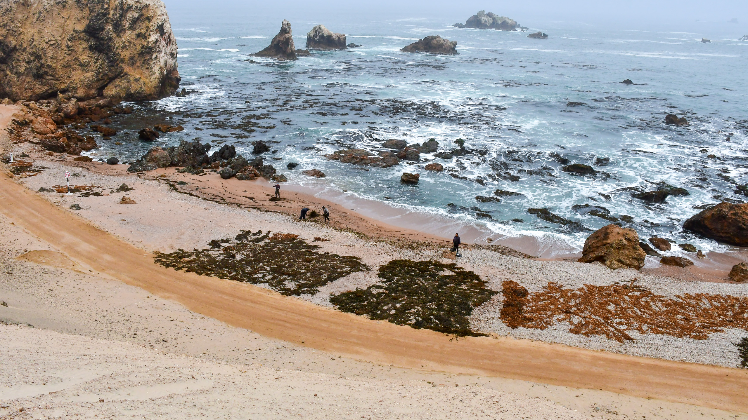Cuando sube la marea, las algas golpeadas por el océano pueden desprenderse de las rocas a las que están ancladas. Enormes cantidades acaban varadas en las playas y al pie de los acantilados. Estas acumulaciones generan toda una nueva comunidad de organismos que las descomponen y devuelven los nutrientes al mar.