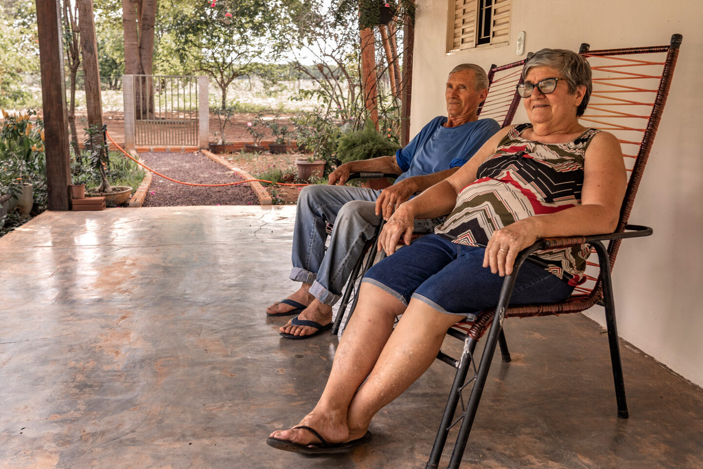 Danilo Pertile, de 73 años, y su esposa Evanir Pertile, de 69, me reciben en su gran galería. Me cuentan cómo el asentamiento, originalmente destinado a agricultores familiares pobres para producir principalmente cultivos alimentarios, se ha ido transformando con el tiempo. “Empezó con pequeñas plantaciones, luego se ampliaron y los pequeños agricultores vendieron sus parcelas”, dice Evanir. “Ahora es prácticamente todo soja”.