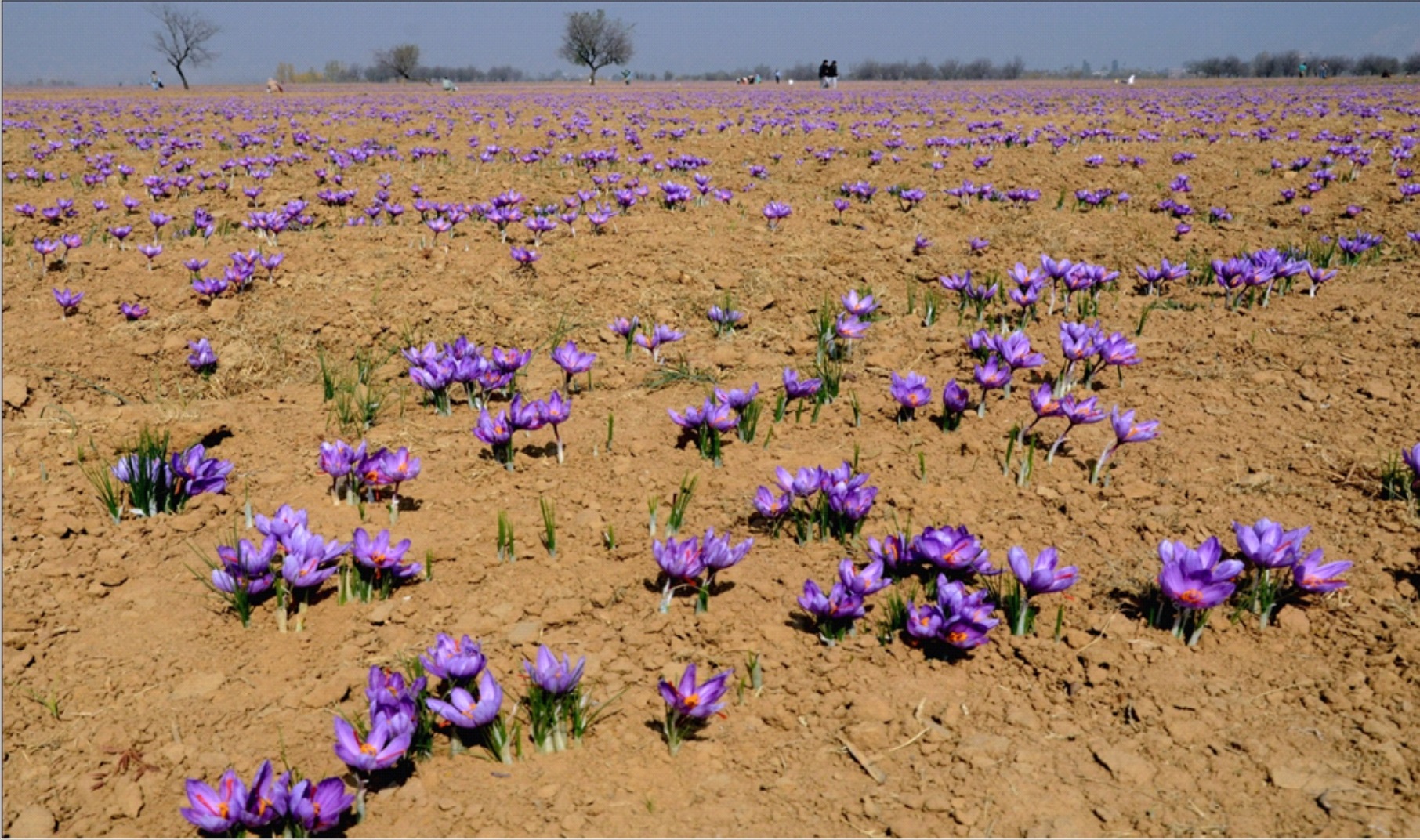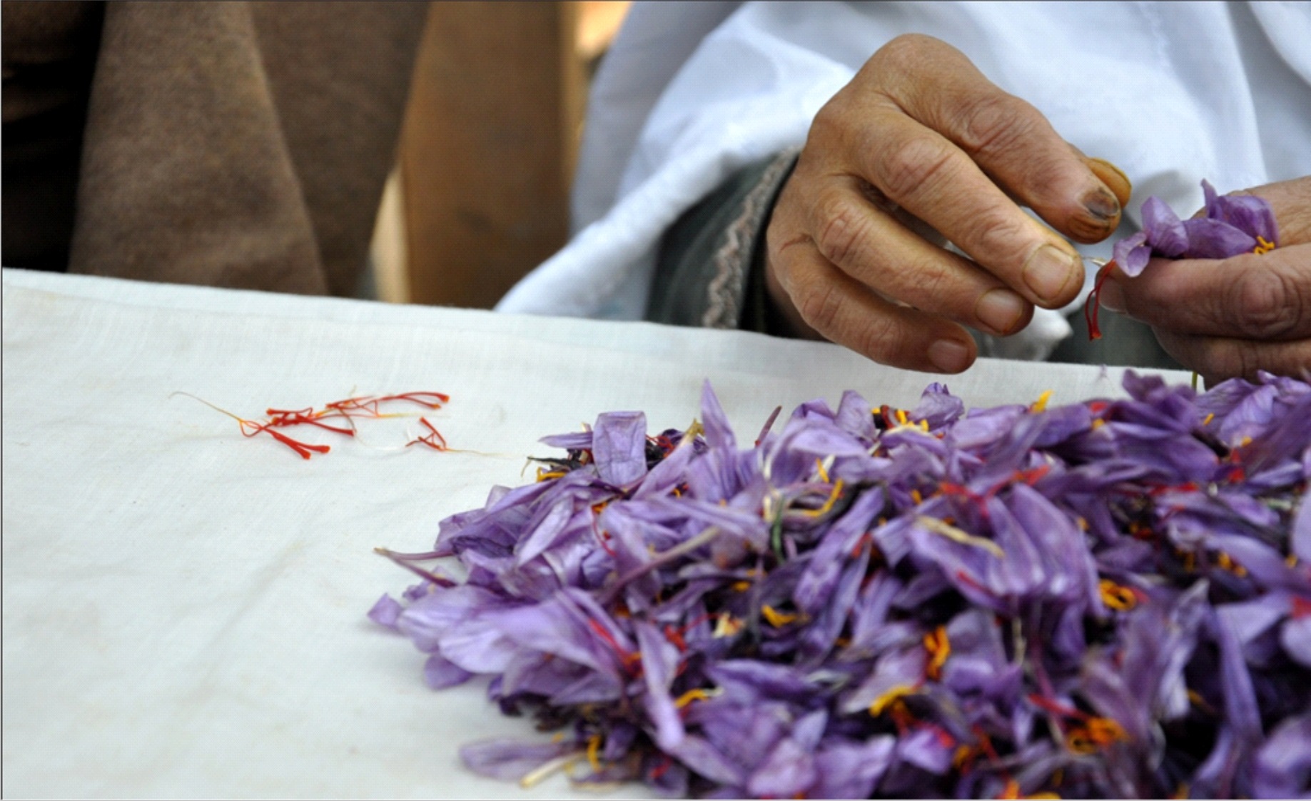 काश्मिरको ग्रीष्मकालीन राजधानी श्रीनगरबाट १४ किलोमिटर टाढा पाम्पोर क्षेत्रमा हजारौं हेक्टर जमिनमा लगाइएको रैथाने फूल केशरको खेतीमा थुप्रै परिवारहरू संलग्न छन् । यो फूलको रातो धागो सावधानीपूर्वक टिपिन्छ र विशेष गरी महिलाहरूले यो काम गर्ने गर्दछन् । केशर विश्वभर महँगो मूल्यमा बेचिन्छ । ‘म सानो छँदा मलाई केशरका खेतहरू हेर्न मन पर्थ्यो । बैजनी रङका फूलले ढकमक्क भुइँ पुरै ढाकेको देख्दा म छक्क पर्थेँ । जब म ठूलो भएँ, तब मैले बुझेँ केशर फुल्ने समयमा जमिन जति बढी बैजनी हुन्छ त्यति नै बाली राम्रो हुन्छ,’ दशकौँ देखि केशर खेती गर्दै आएका परिवारकी छोरी तथा बुहारी रिफत जानले भनिन् ।