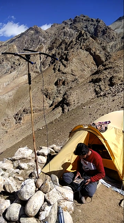 कुनै हिमचितुवा क्याप्चर भयो कि भएन भनी ट्र्यापबाट प्राप्त रेडियो सिग्नल हेर्दै लेखक (तस्बिरः डीएनपीडब्लूसी⁄डब्लूडब्लूएफ