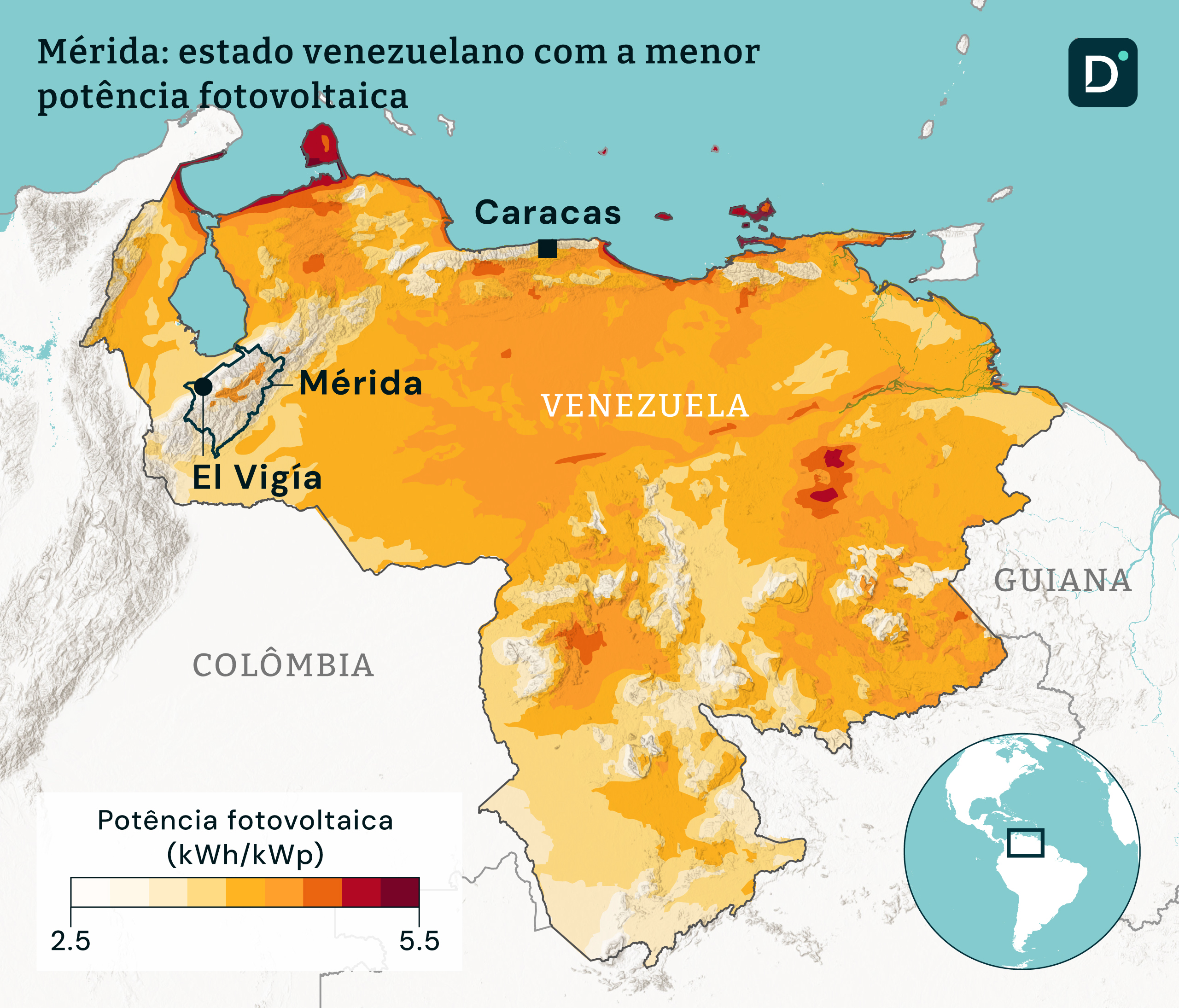 O estado de Mérida, atravessado pela Cordilheira dos Andes, tem o menor potencial fotovoltaico do país, segundo o Global Solar Atlas. Nenhuma fonte entrevistada pelo Dialogue Earth conseguiu explicar por que o estado foi escolhido para sediar esses projetos.