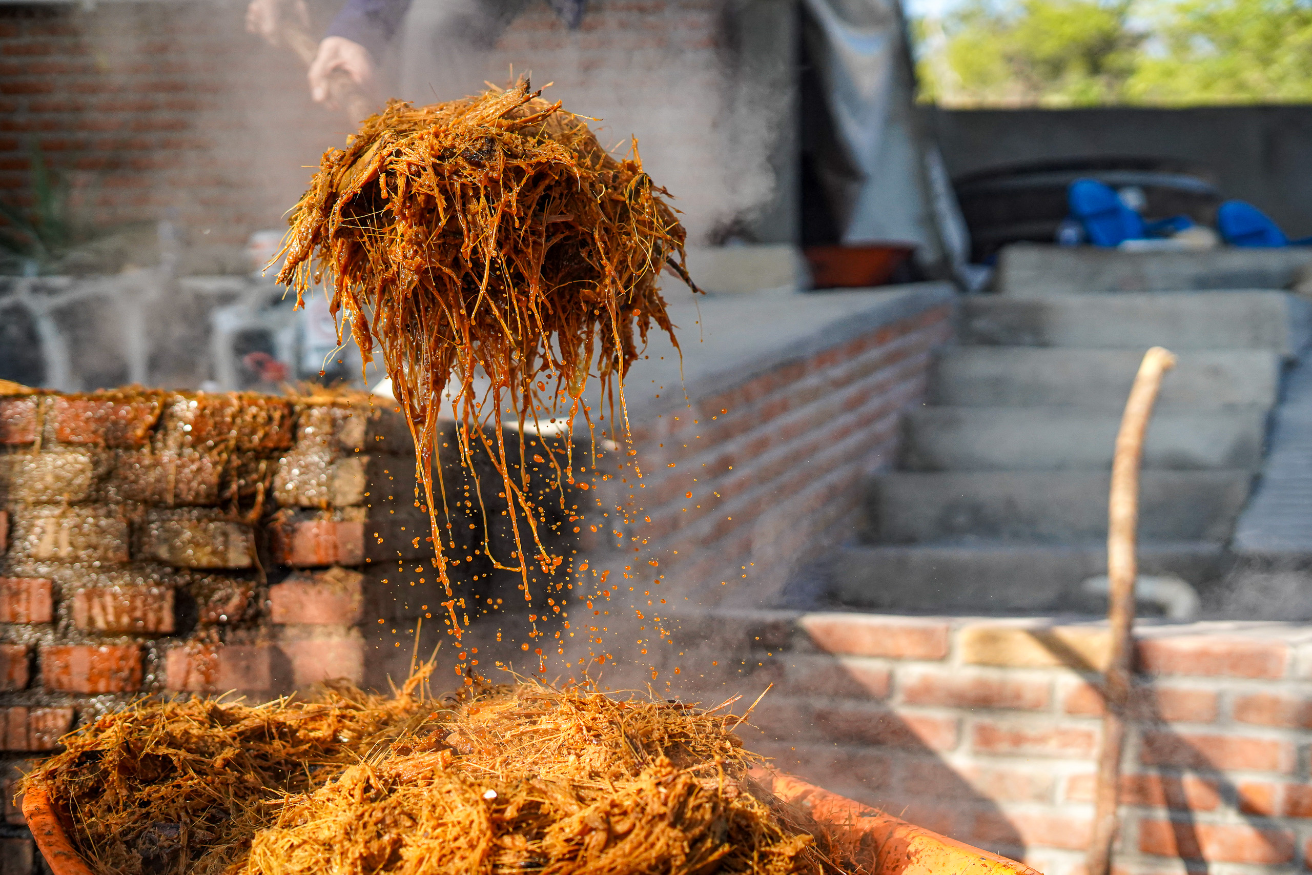 Depois de colhidas, as piñas de agave são cozidas à lenha em fornos com formato de cone, processo conhecido como tapada. Isso carameliza os açúcares e facilita sua fermentação, gerando o álcool. A lenha é extraída dos próprios morros, aumentando ainda mais o impacto ambiental da produção de destilados mexicanos.