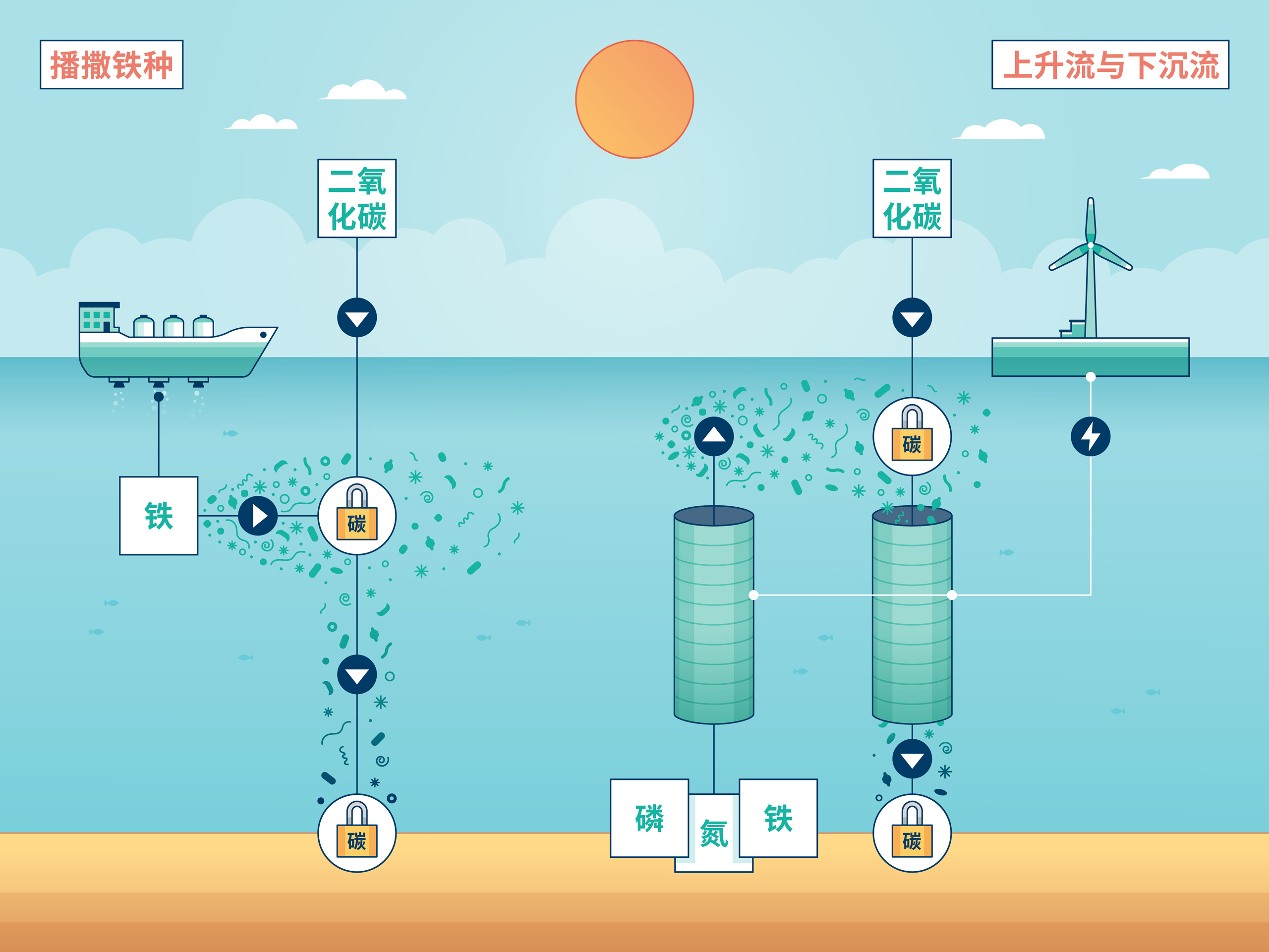 生活在海洋表面附近的浮游植物能移除大气中的碳,并在死后将其带入深海——深海洋流将富含营养物质的水体从深海带到海洋表面时,会助推这一过程。如此看来,与其往海面上添加铁元素,何不利用科学技术来助其一臂之力?