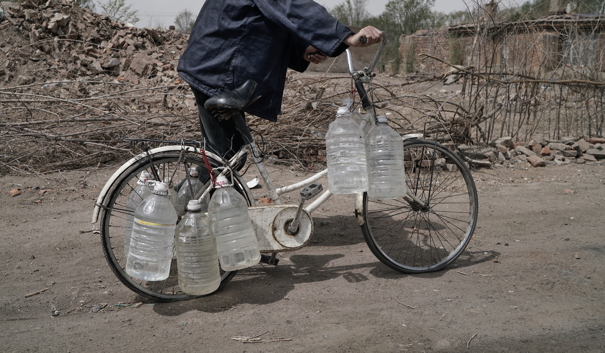 如今,在矿区边老的矿工村里,依旧还有一些没有搬离的老矿工,黄安远就是其中之一。他在煤矿上工作了30年,如今已经退休,每月有2000多元的退休工资,5年前,政府就给他做了安置,让他搬到孙家湾沉陷安置区里的新楼里,老黄把房子给了儿子的三口之家,他说“这儿没什么能上班挣钱的工厂,儿子家里条件也不好,更别提买房了。”他和老伴则还在两间修了又修的老屋里能熬一天是一天。去年,周围大多数房子已经拆了,现在水也断了,每天还得到外面去拉水进来。