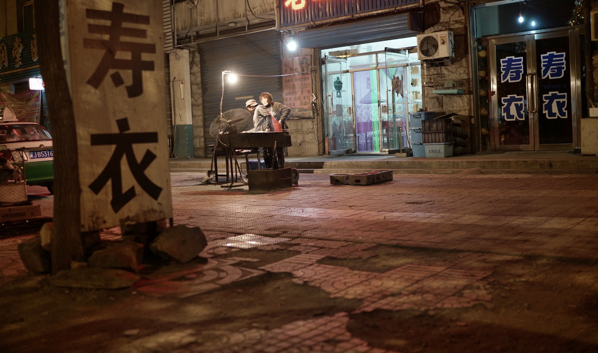 在阜新街头,烧烤摊特别多,比东北的其他城市都多。在煤海小区、矿工小区等一些人群密集的街道做粗略统计就发现,一条不到500米长的巷子里,最多的烧烤摊或者烧烤店有21家,最少也有5家。夜幕降临后,临时推车出来摆摊的就更多了。当地人说,一来,这与东北人的饮食习惯有关;二来,这也是下岗后选择再就业成本最低的一种方式。