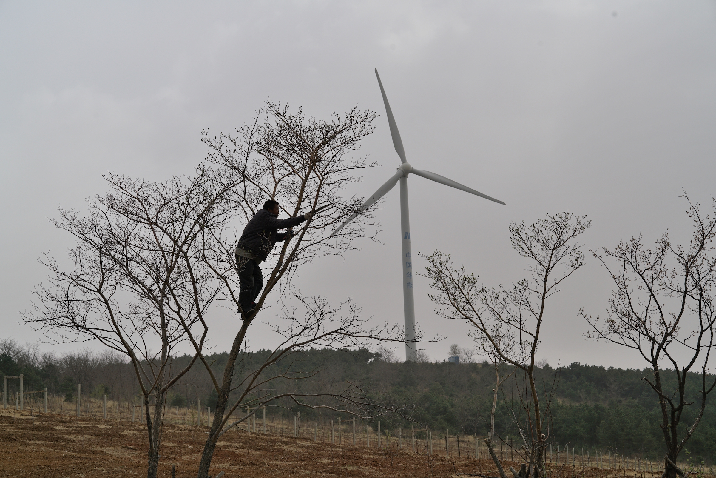 张师傅在位于山腰的华能高山子风电场担任门卫工作,负责后勤保卫。对于18岁起就在矿上工作的他来说,能够找到这样一份收入不算高的工作已属不易。当被问及怎么看待从煤向风的转变时,他憨厚地笑笑,“这不就是大风刮来的钱嘛!”